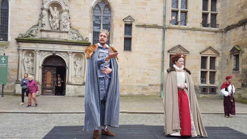 演員們在演繹莎士比亞名著《哈姆雷特》片段