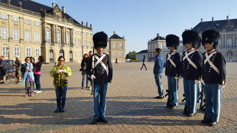 丹麥皇家衛(wèi)兵列隊(duì)換崗,別看高聳的皮毛帽子,在夏季據(jù)說具有移動新風(fēng)功能(隱蔽內(nèi)置風(fēng)扇)