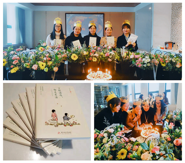 當(dāng)女神節(jié)碰到生日會(huì),女神中的壽星們還得到了一份專屬的生日驚喜——豐子愷先生的散文漫畫集《萬(wàn)般滋味 皆是生活》,衷心祝愿每位鴻寶女神都能如書上所寫,“永葆童真,并且樂此不疲地去生活”。最后,生日女神們?cè)诜曳蓟▍仓性S下生日愿望,大家共同享用豐盛的美味蛋糕,現(xiàn)場(chǎng)彌漫著浪漫而溫馨的氣息。