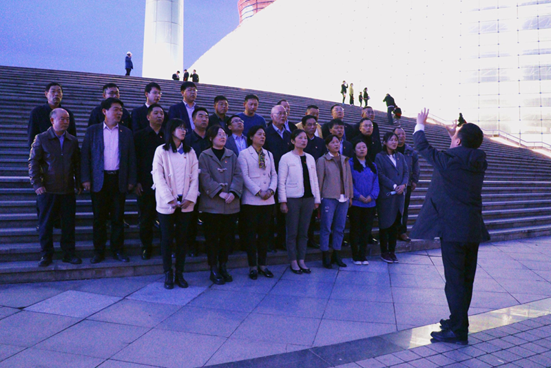 4月10日晚18:20,黨員們乘坐集團大巴出發,并在滿心期待中激情澎湃地齊唱了經典紅歌《沒有共產黨就沒有新中國》。
