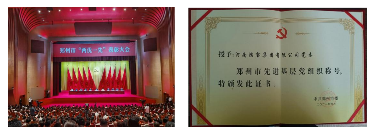 6月26日,鄭州市“兩優一先”表彰大會隆重召開,會議表彰了為鄭州作出突出貢獻的優秀黨員、優秀黨務工作者和先進基層黨組織。在此次表彰中,鴻寶集團黨委榮獲鄭州市“先進基層黨組織”稱號。